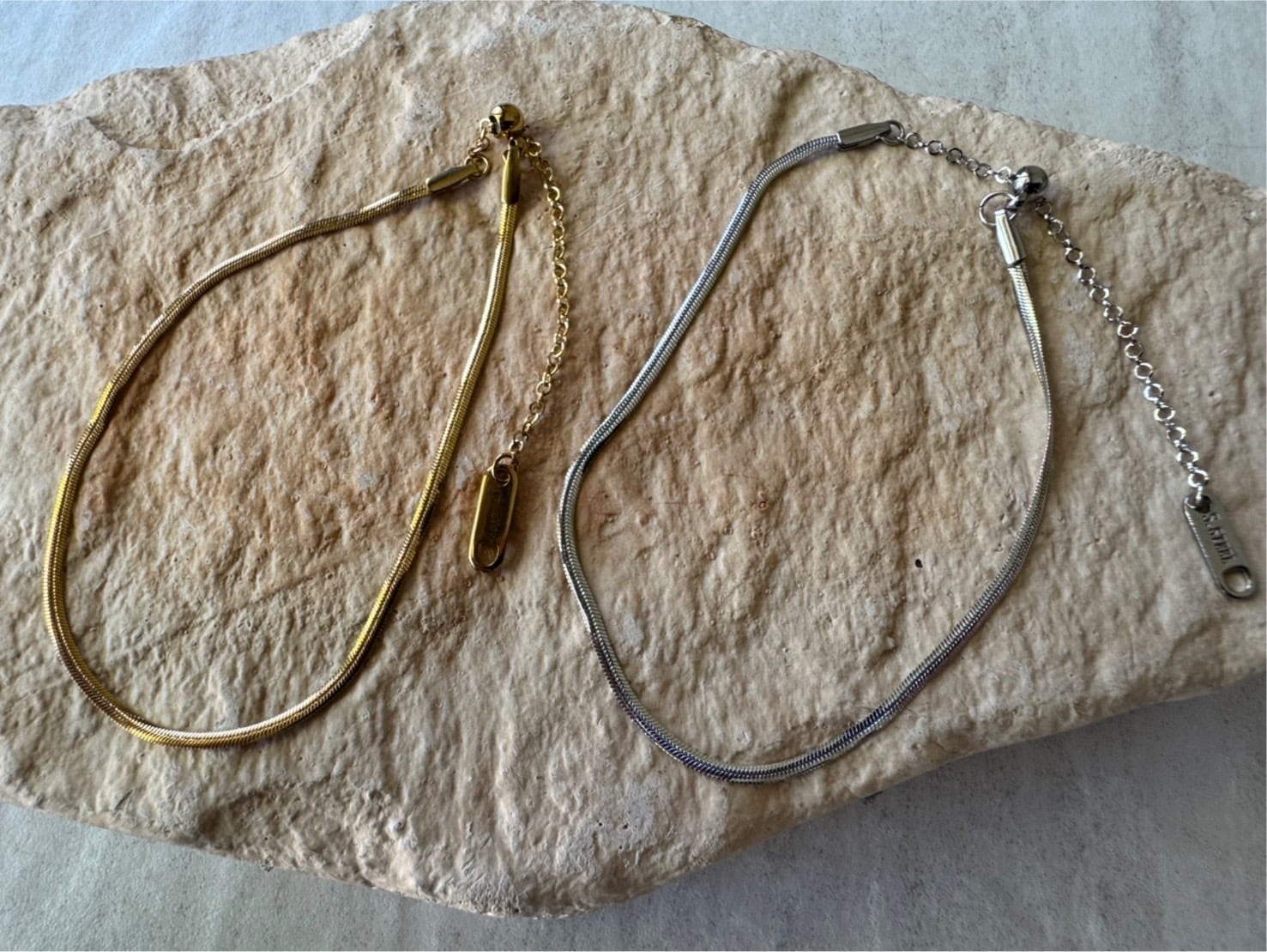 特徴:シルバーはステンレスそのもののカラーで、シンプルながらもエレガントな印象を与えます。華やかなゴールド部分にはIPメッキ加工が施されており、耐久性が高く、色落ちや剥がれの不安が少ないため、長期間安心してご使用いただけるのが魅力です。また、汗や水に強いため、日常生活やスポーツシーンでも気兼ねなく身につけられます。さらに、ステンレス素材を使用しているため、金属アレルギーの方にも比較的安心してご利用いただけます。ただし、一部の方にはアレルギー反応が出る可能性がありますので、ご不安な方はお近くのかかりつけ医にご相談ください。