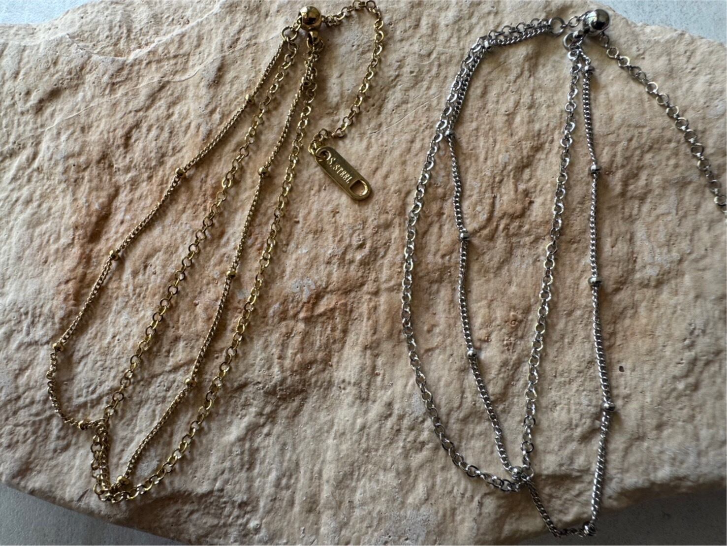特徴:シルバーはステンレスそのもののカラーで、シンプルながらもエレガントな印象を与えます。華やかなゴールド部分にはIPメッキ加工が施されており、耐久性が高く、色落ちや剥がれの不安が少ないため、長期間安心してご使用いただけるのが魅力です。また、汗や水に強いため、日常生活やスポーツシーンでも気兼ねなく身につけられます。さらに、ステンレス素材を使用しているため、金属アレルギーの方にも比較的安心してご利用いただけます。ただし、一部の方にはアレルギー反応が出る可能性がありますので、ご不安な方はお近くのかかりつけ医にご相談ください。
